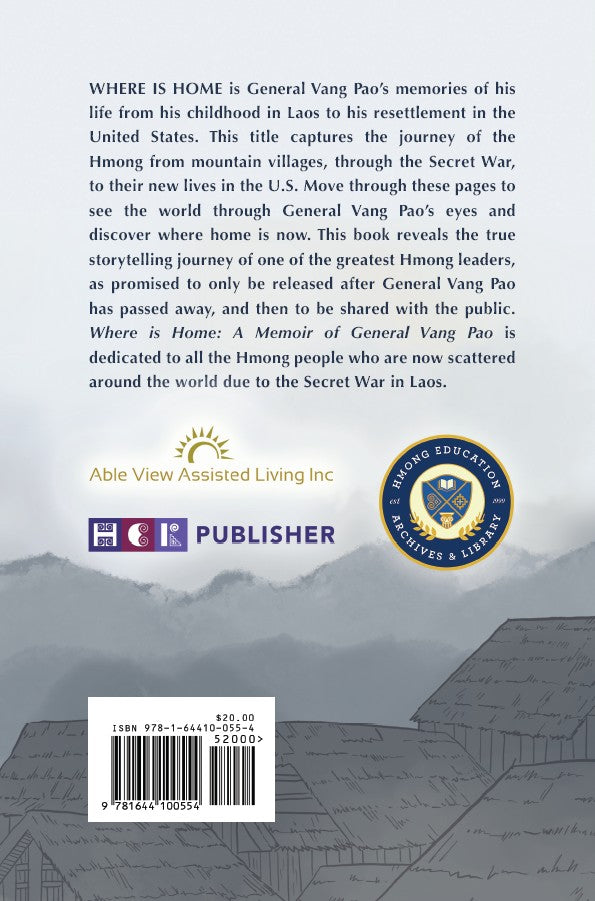 WHERE IS HOME is General Vang Pao’s memories of his life from his childhood in Laos to his resettlement in the United States. This title captures the journey of the Hmong from mountain villages, through the Secret War, to their new lives in the U.S. Move through these pages to see the world through General Vang Pao’s eyes and discover where home is now. This book reveals the true storytelling journey of one of the greatest Hmong leaders, as promised to only be released after General Vang Pao passed away, and then to be shared with the public. Where is Home: A Memoir of General Vang Pao is dedicated to all the Hmong people who are now scattered around the world due to the Secret War in Laos.